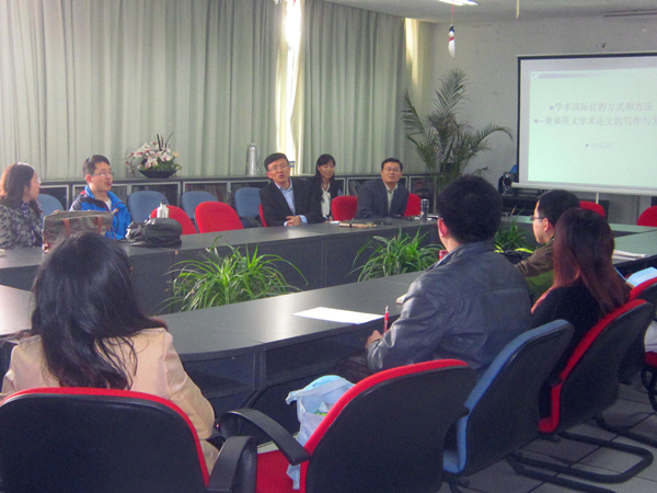 3月27日下午,南京大学外国语学院博士生导师何成洲教授应邀为百富策略白菜网、大外部全体英语专业老师做《学术国际化的方式和方法——兼谈英文学术论文的写作与发表》的学术报告,百富策略白菜网副院长江振春主持了报告会。