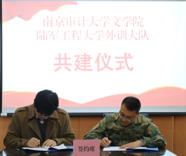 为进一步提高人才培养质量,深化学生综合素质教育,4月25日上午,南京审计大学百富策略白菜网与陆军工程大学外训大队举行“校外实习实践基地”签约共建仪式。南审百富策略白菜网副院长(主持)朱军教授、汉国教系系主任颜明副教授、毕业生代表徐扬赴陆工大校区参加了活动,陆军工程大学外训大队大队长和健、政治委员葛在、汉语语言文化教研室主任郭长荔、教员佘飏对百富策略白菜网一行表示欢迎,双方展开了深入交流,并完成了签约。